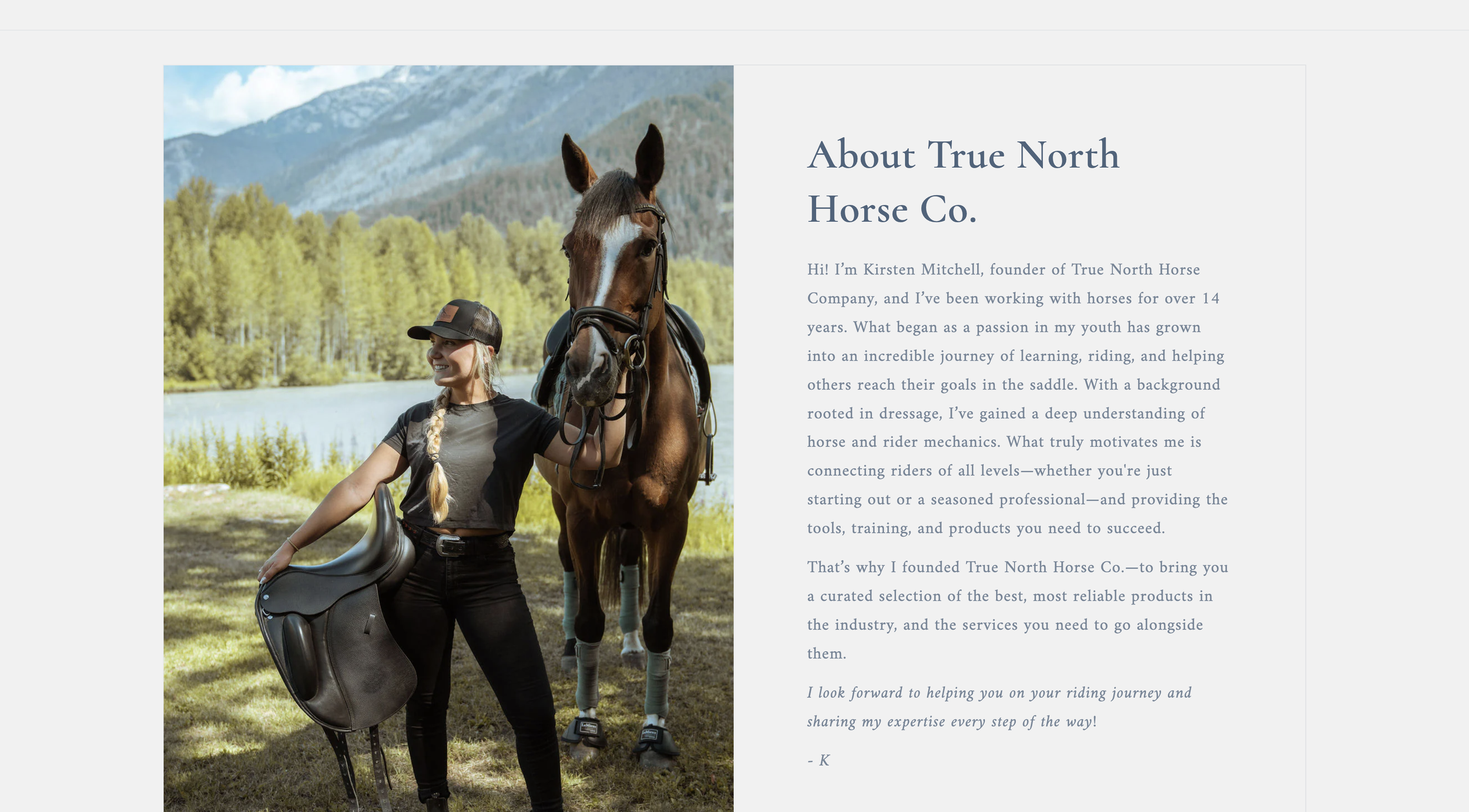Working with True North Horse Company was an opportunity to bring clarity and cohesion to a brand built on deep expertise. Led by equestrian expert and saddle fitter Kirsten Mitchell, their business is rooted in thoughtful curation and trusted guidance—something their previous site didn’t fully convey.